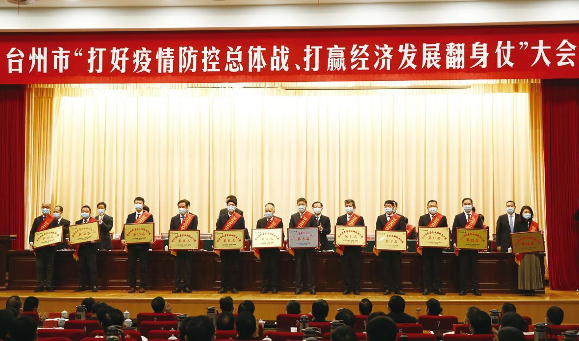 本報訊(記者?? 杜雯影)3月11日,臺州市委、市政府召開全市“打好疫情防控總體戰、打贏經濟發展翻身仗”大會。集團董事長謝建勇受邀參加會議并上臺接受表彰。