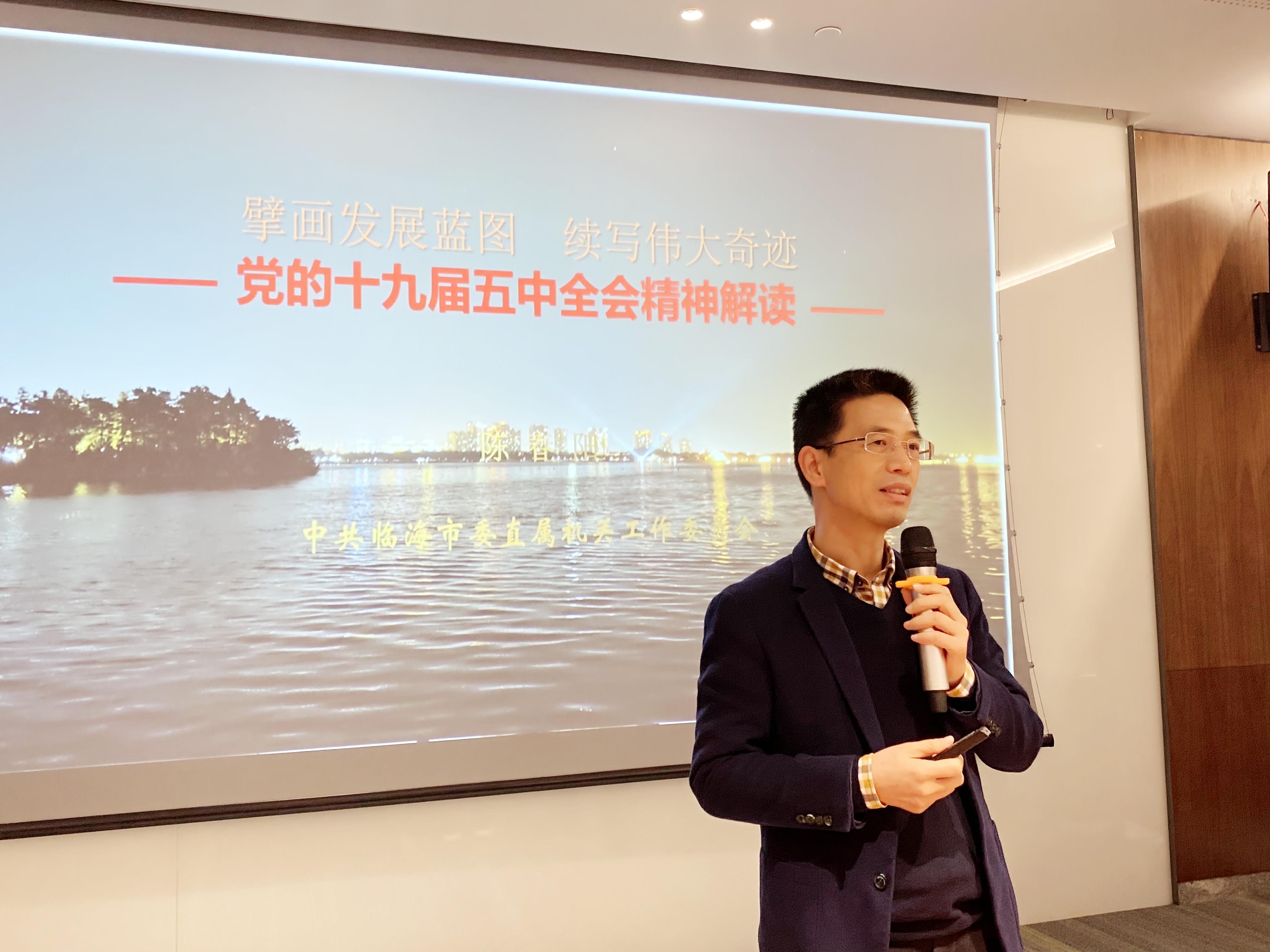 本報訊(通訊員 洪 婷)12月3日晚,臨海市委黨的十九屆五中全會精神宣講團報告會在集團會議室召開。臨海市委宣講團成員、市委直屬機關工委副書記陳春陽作宣講報告,大洋街道黨工委委員王曉波出席,集團黨委書記陳幼珍,副書記陳楊思嘉及臨海區域全體黨員參加報告會。