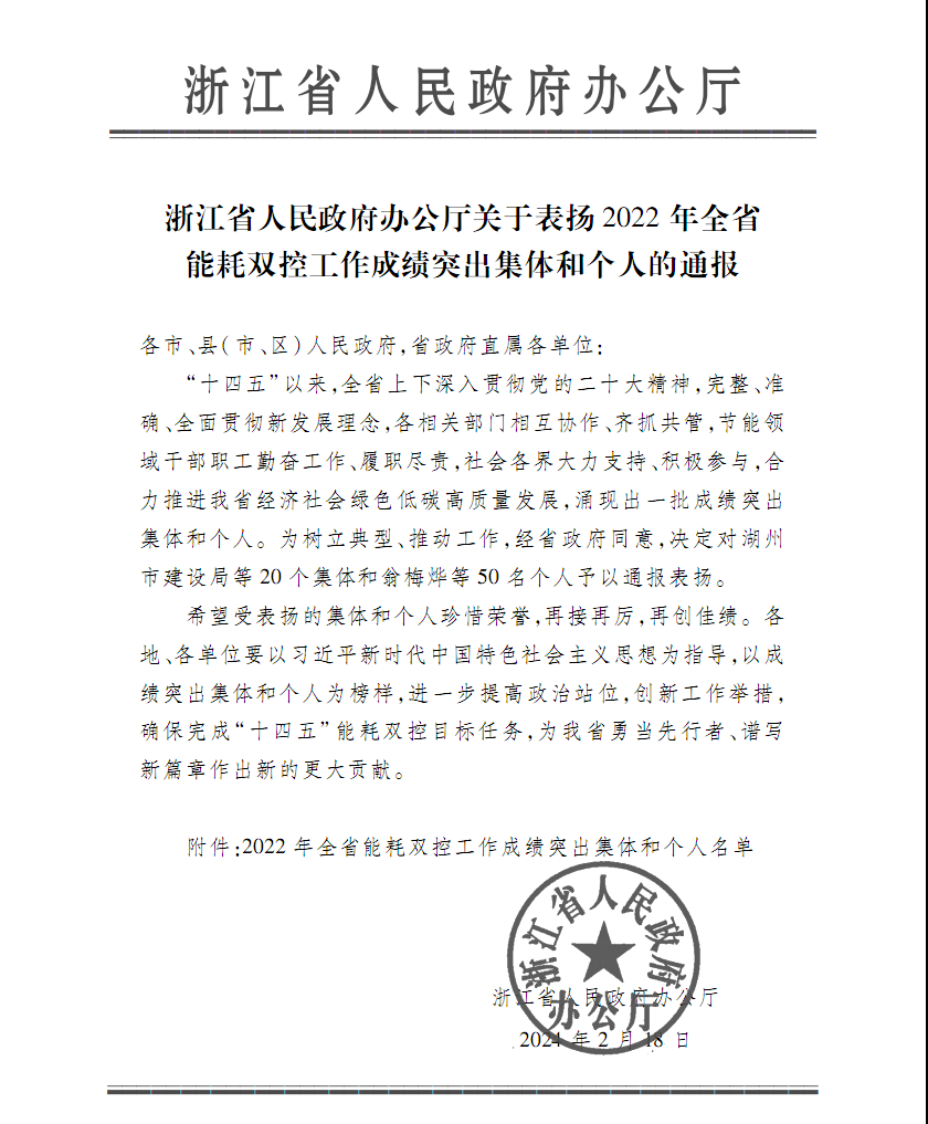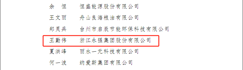 新年伊始,省政府辦公廳下發(fā)《關(guān)于表?yè)P(yáng)2022年全省能耗雙控工作成績(jī)突出集體和個(gè)人的通報(bào)》,浙江永強(qiáng)集團(tuán)股份有限公司設(shè)備科科長(zhǎng)王勤偉榮獲成績(jī)突出個(gè)人。